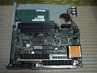 ISAバスに72PinSIMMと、ちょっと懐かしい感じです。下の写真右下の金色ヒートシンク部分がCPU(AMD5x86 75MHz)。