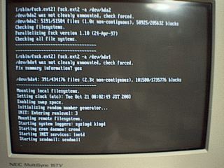 起動中画面。やっぱりsendmailが動いてました(ちょっと分かりにくいけど画面最後の行)。