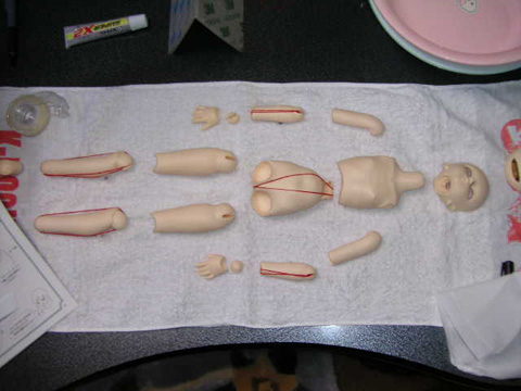 腕のゴムはタコ糸&テープぐるぐる巻きで何とか通しましたが、肩口が狭くなってる上に曲がってたりしてちと苦労。関節内のバリは綺麗に取っときましょう。
