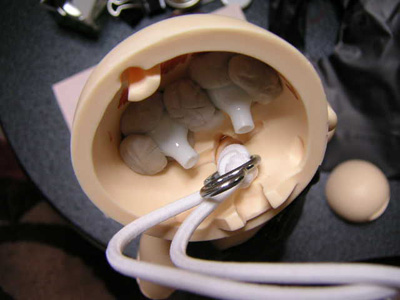 頭取り付け時の金具は、どこかのサイトに書いてた「溝の後ろに引っ掛け」を採用。でないと眼と金具が微妙に干渉するしなぁ。