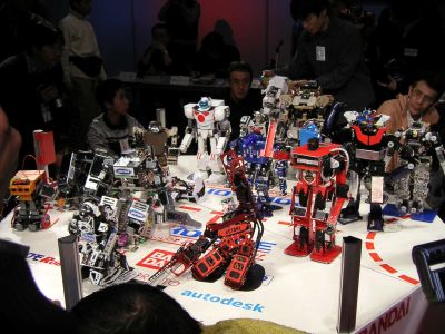 1時ジャストから別フロアでASIMOのデモがあるってことで、ちょっと覗いてからROBO-ONE会場へ。2回戦以降はさすがにここまで勝ち残ってきたロボットだけあって、なかなか観応えのある勝負が多い。