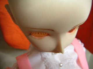 下睫をちょっと描き直し&唇塗り直しの後、コーティングのためのつや消しクリア吹いてしばらく放置しときます。乾いた頃を見計らって唇に艶出しのクリア乗せ&瞼と頬に軽くパステル。