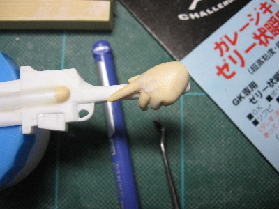 余ったパテで右手も作成。銃は脱着可能にしようと思ってたら外れなくなったのでそのまま進めよう…orz