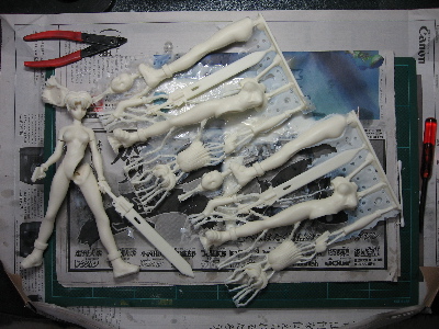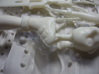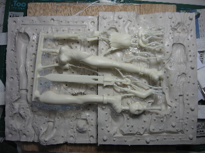懸案だった腕パーツの注型不良はエア抜けのルート確保で何とかクリア。髪パーツもちょっとだけ改善しました。一応量産のメドは立った感じ。