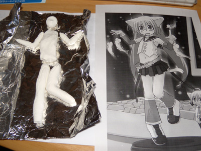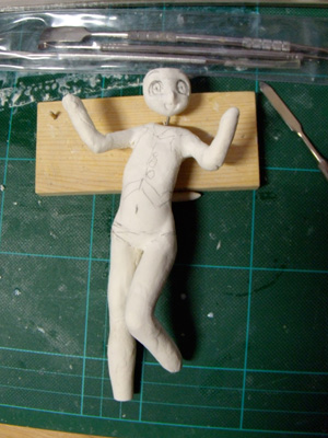 サイトから頂いた画像を製作するサイズの原寸で印刷して、それをゲージに大まかな形を作成。乾燥はオーブントースターで20分くらい加熱して強制乾燥させます。基本的に芯なのでヒビが入ってもキニシナイ!