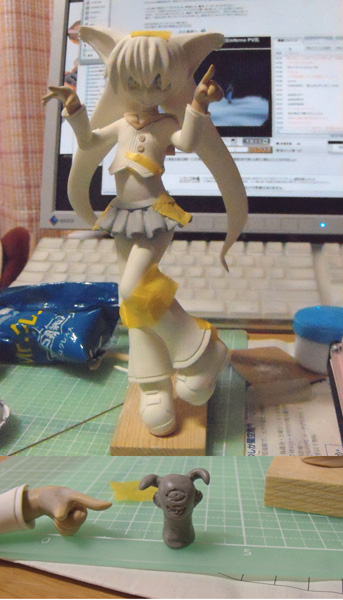 絵の方が一段落したところで、先日コミティア会場にてツッコミを頂いてたみゃうたんの胴体ぶった切ったりしておりました。約5mm詰めてバランスは良くなったかな?